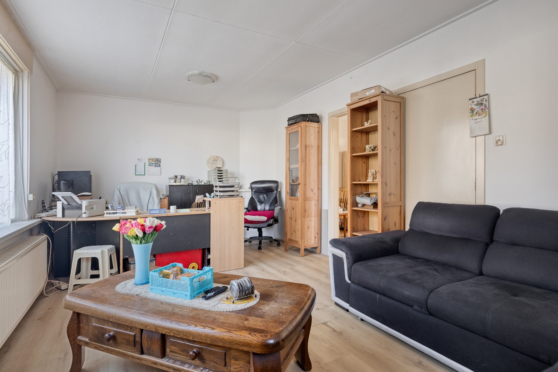 Via de entree met meterkast, toiletruimte en trapopgang kom je binnen in de hal. Vanuit hier heb je toegang tot de lichte en ruime woonkamer aan de voorzijde van de woning. Dankzij de hoekligging en de grote raampartijen geniet je hier van veel natuurlijk lichtinval.