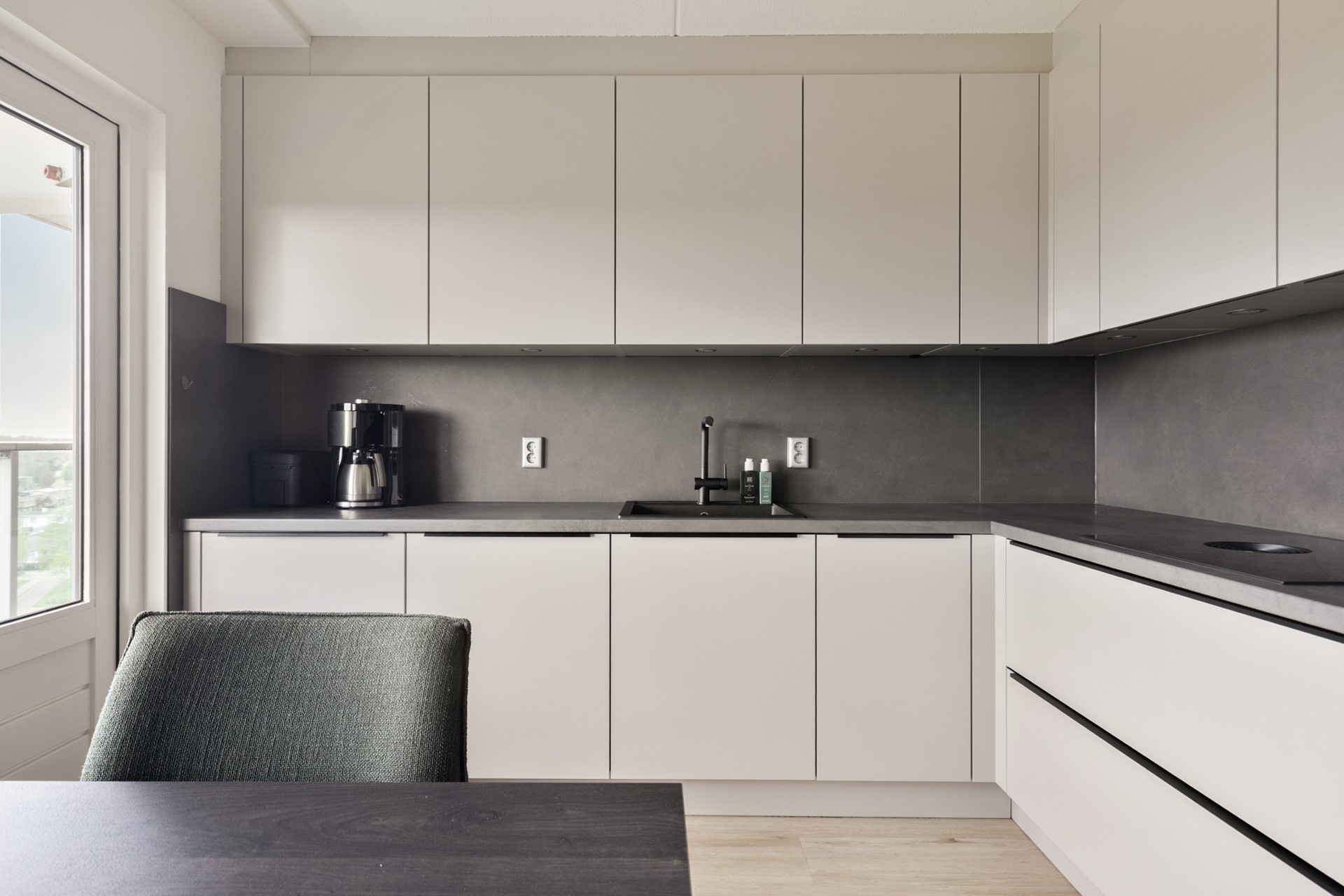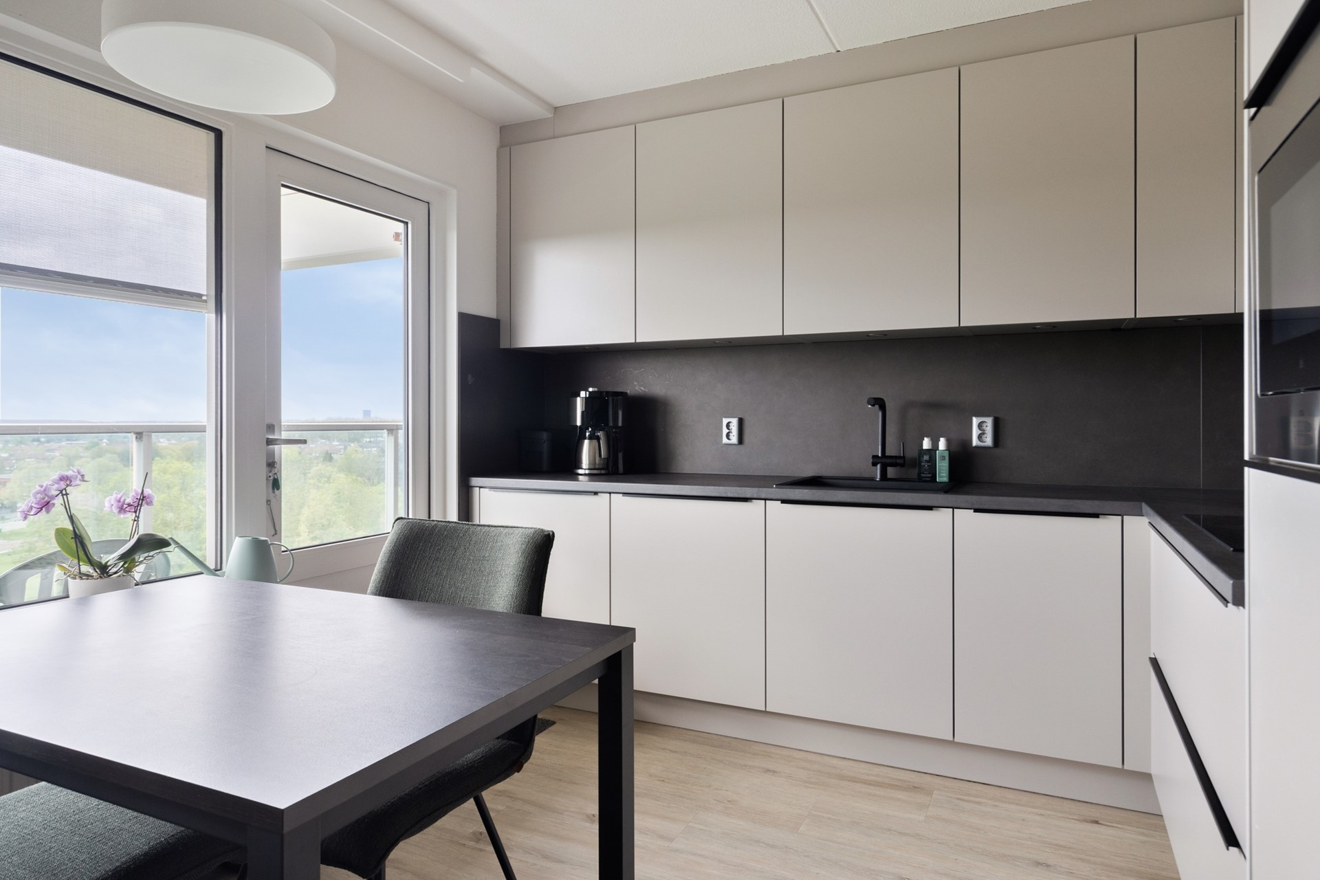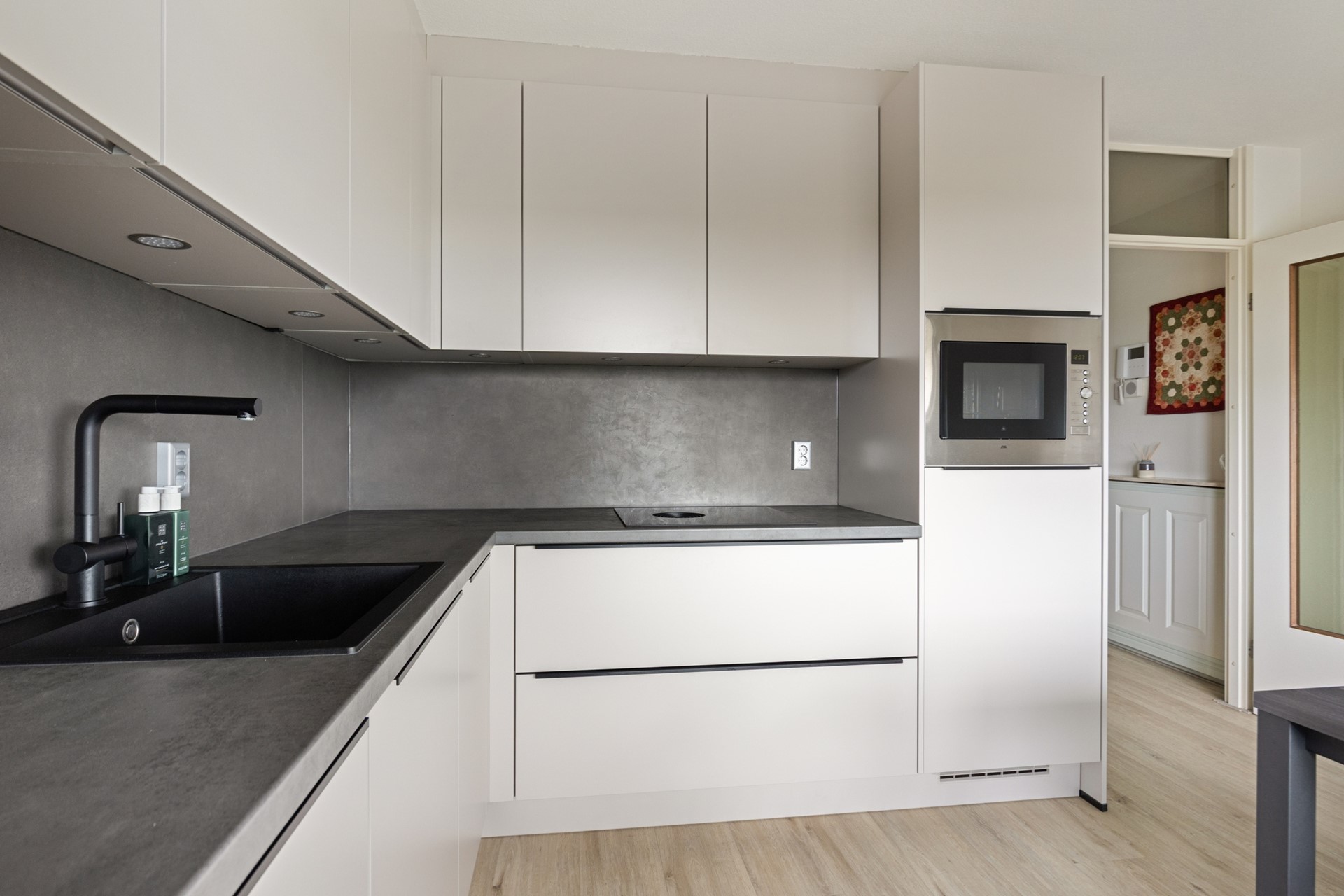 De moderne keuken is circa 2 jaar geleden volledig vernieuwd en voorzien van alle gemakken. Vanuit de keuken is er toegang tot een tweede balkon, waardoor je op elk moment van de dag van buiten kunt genieten.