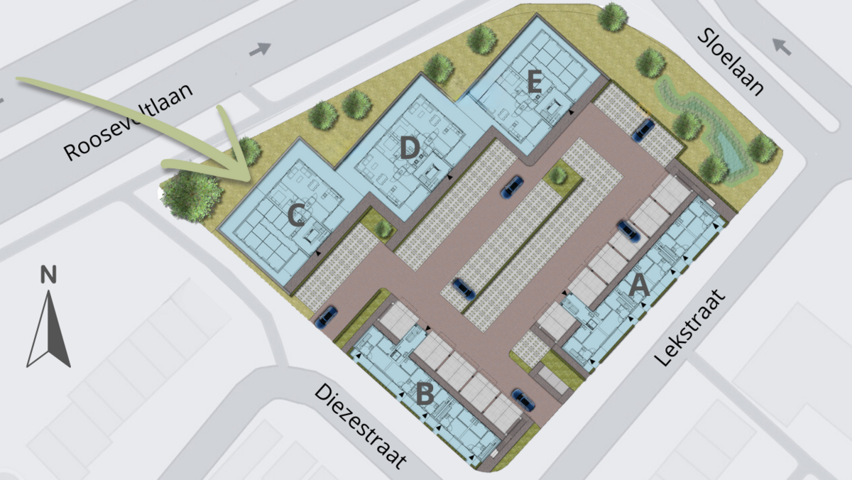 • Eigen parkeerplaats op binnenterrein of carport (verplicht aan te kopen)