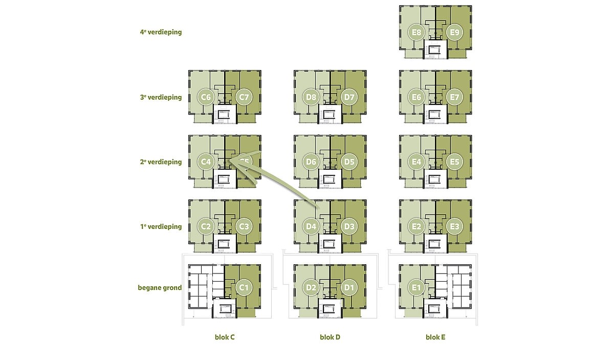 Daarnaast is ieder appartement voorzien van een (inpandige) berging en wordt het appartement opgeleverd met een eigen parkeerplaats op het binnenterrein of een carport (niet in de prijs inbegrepen)