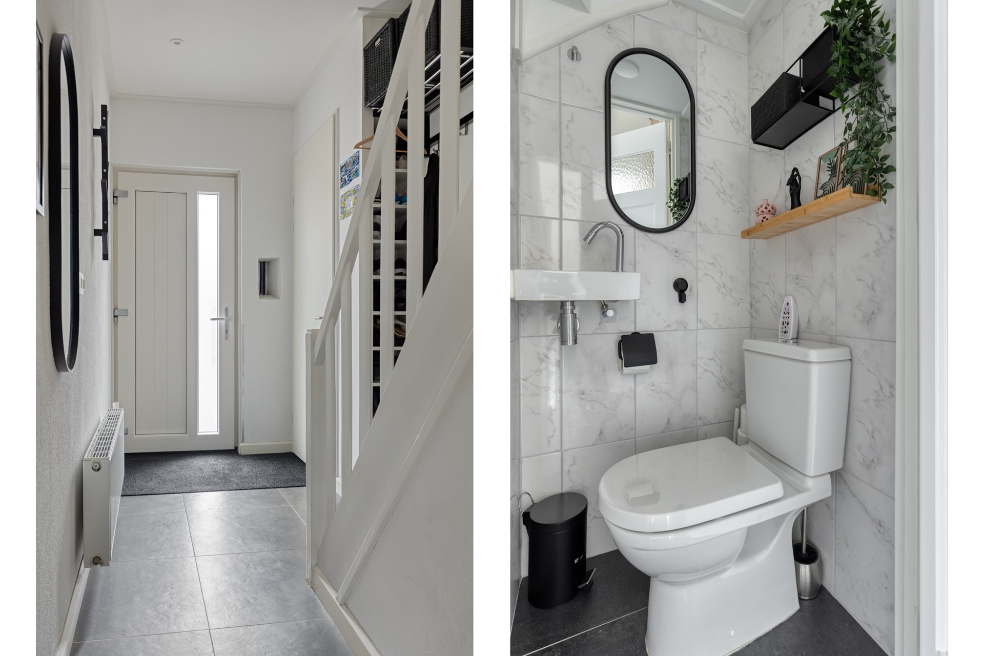 Bij binnenkomst kom je in de hal met meterkast (vernieuwd in 2020), toilet en trapopgang. Vanuit hier bereik je de lichte woonkamer, heerlijk wonen in alle seizoenen. De moderne open keuken is praktisch ingedeeld en sluit aan op de bijkeuken, ideaal voor extra opslag en witgoed. Vanuit de bijkeuken heb je toegang tot de achtertuin.