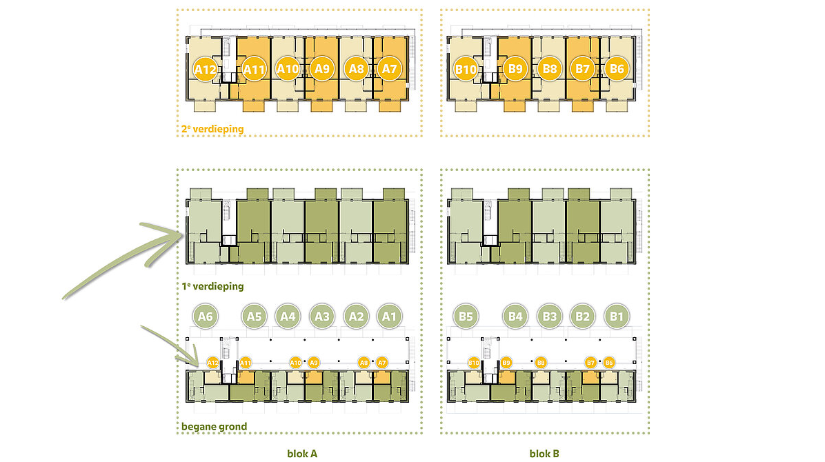 Deze Duplex woningen bestaan uit 2 woonlagen met een woonoppervlakte tussen de 72 en 77 m2