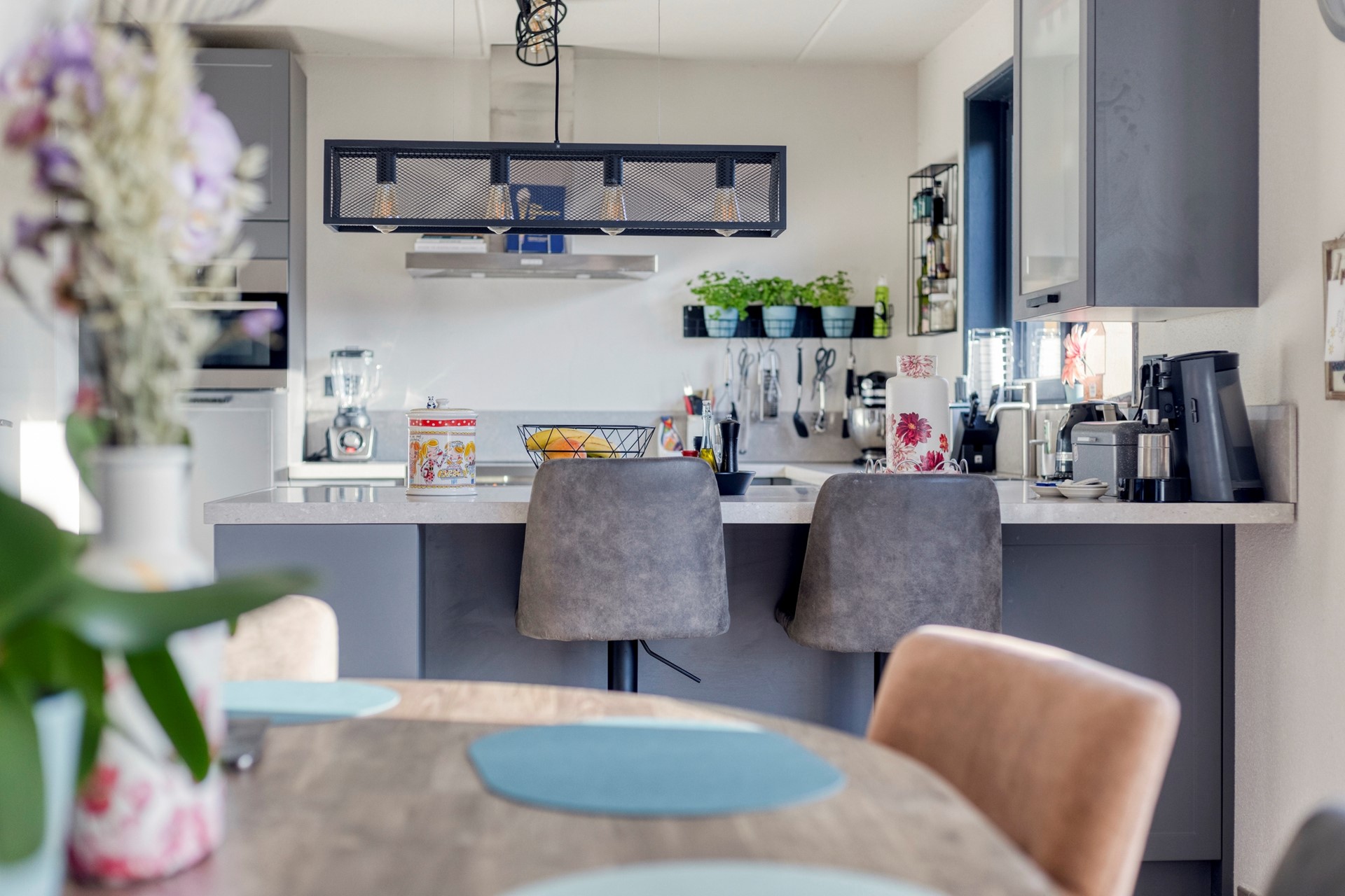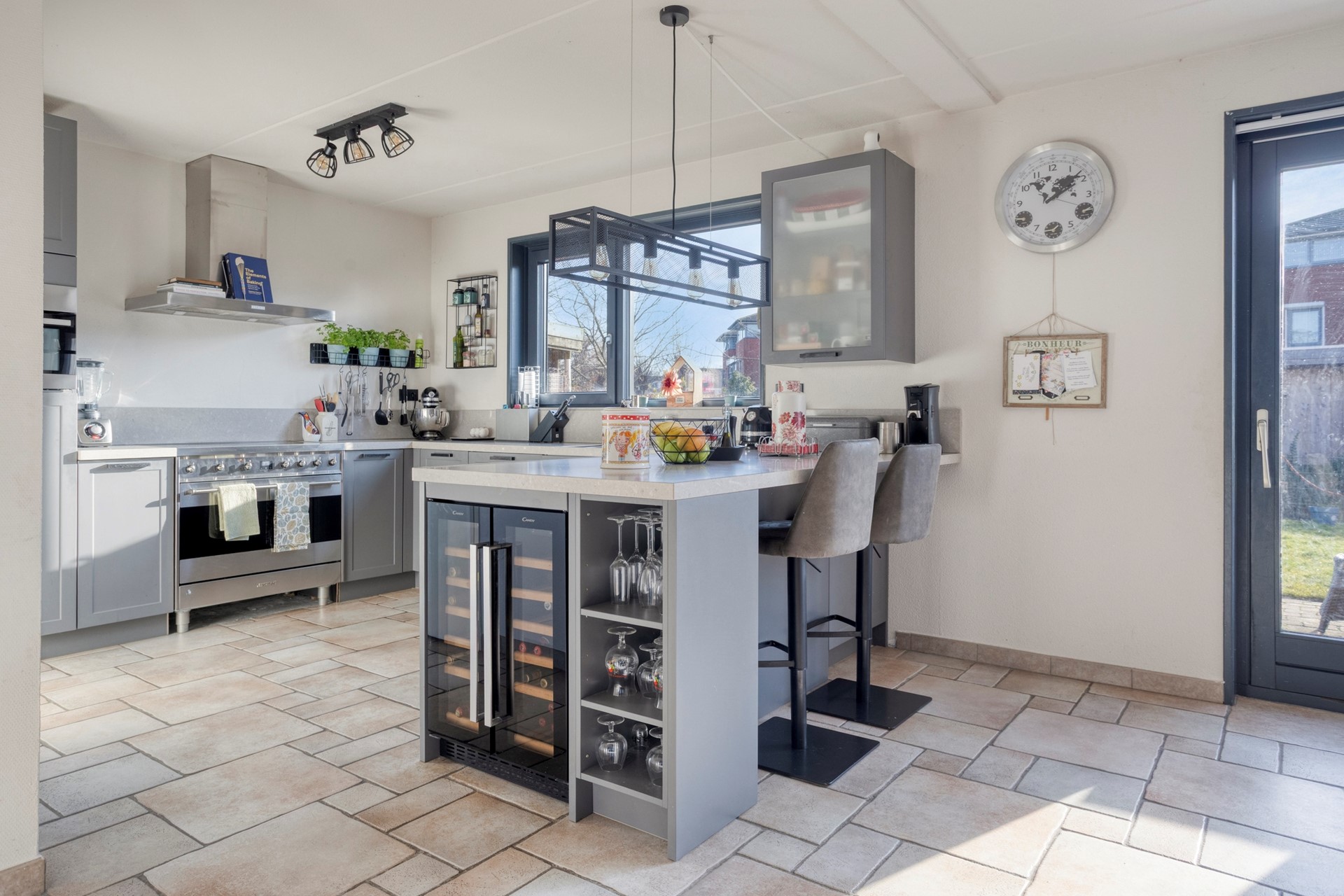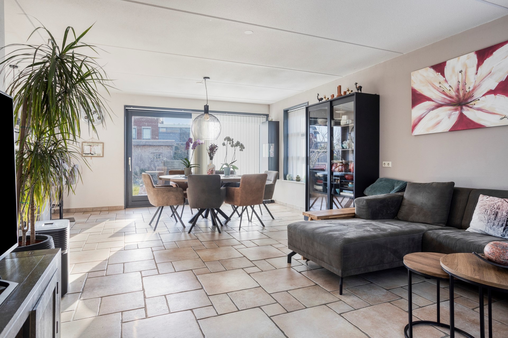 Via de entree betreedt u de woning. In de hal bevinden zich het toilet, de trapopgang en toegang tot de inpandige garage. Vanuit hier loopt u door naar de lichte en ruime woonkamer met grote raampartijen die zorgen voor een prettige lichtinval. De woonkamer staat in open verbinding met de eethoek en de keuken. De keuken is praktisch ingericht en biedt voldoende werk- en kastruimte, ideaal voor dagelijks gebruik en gezellig samen koken.
