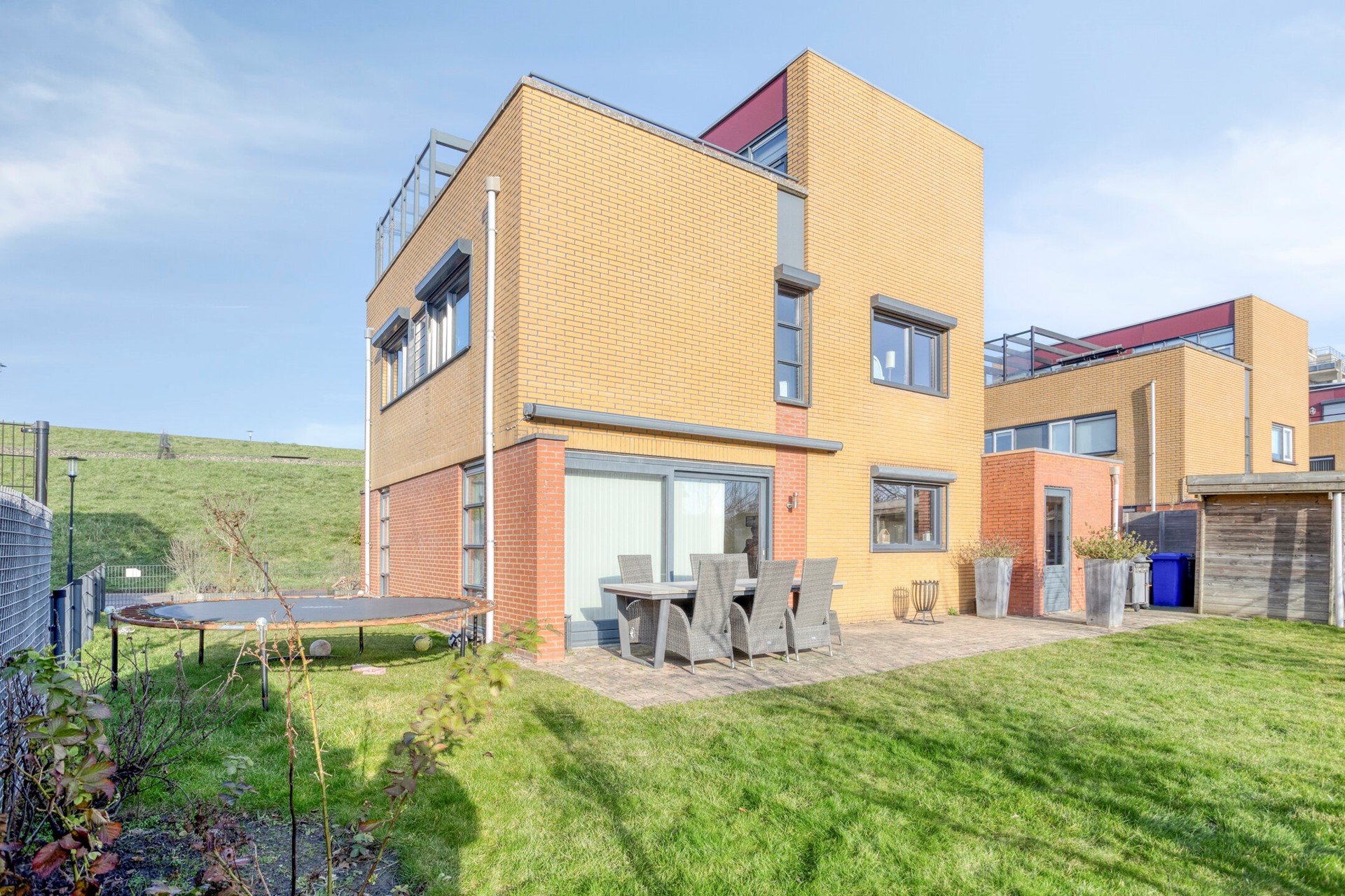 Rondom de woning ligt een verzorgde tuin met meerdere zitmogelijkheden. Het dakterras vormt een mooie aanvulling en geeft deze woning nét dat beetje extra.